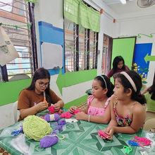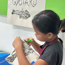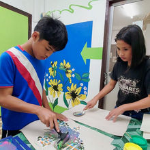 Inaugural print making and painting sessions taught by Cathy Douglass, assisted by Alyssa Gato. Forty five young artists came to the first session on February 18, 2020.